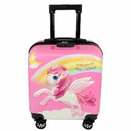 Storite 15 Inches Kids Trolley Bag Hard-Sided Polycarbonate Unicorn Print Spinner Suitcase Trolley Bags for Kid's Travel (Pink - 35 x 23 x 38 Cm)
