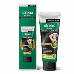 Streax Insta Shampoo Squeeze Pack Hair Colour for Women & Men, Natural Black 1 , 200ml|Hair Colour Black|100% grey coverage |Long Lasting Hair Color, easy to use| Ammonia Free Hair Color, No Paraben & Sulphate