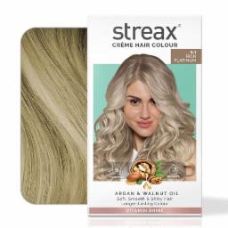 Streax Permanent Hair Colour, 100% Grey coverage, Infused with Argan and Walnut Oil, Long Lasting Cream Hair Colour for Women, Ash Hair Color, 9.1 Rich Platinum, 120 ml, Pack of 1