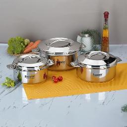 Sumeet Smart Serve Stainless Steel Double Wall Insulated Small Hot Pot/Hot Meal Box/Casserole Combo of 3Pc, 1L, 1.5L & 2.5L, Silver