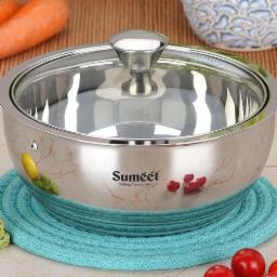 Sumeet Stainless Steel Casserole with Glass Lid | Includes Roti & Gravy Pots, 1000ml | Keeps Food Warm & Fresh | Ideal for Rotis, Chapati, and Sabzi | Dishwasher Safe