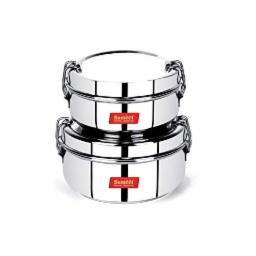 Sumeet Stainless Steel Food Pack Lunch Box for Kids/School with Steel Separator Plate and Locking Clip, Set of 2Pc, 350ML & 500ML Capacity