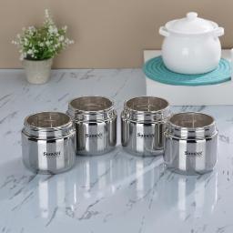 Sumeet Stainless Steel Small Canisters/Dabba/Storage Containers for Kitchen with See Through Lid, Set of 4 Pcs, 400ml Each, 9cm Dia, Silver