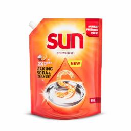 SUN Dishwash Liquid, 1.8L, for Quick & Easy Dishwashing, with Baking Soda & Orange, Less Scrubbing, more Cleaning, Gentle on Hands