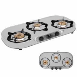 Surya Flame 3 Burner Gas Stove Stainless Steel Gas Chulha Cooktop, Costa LPG, ISI Certified, 2-Year Doorstep Warranty, Silver Finish, High Efficiency, Durable & Safe