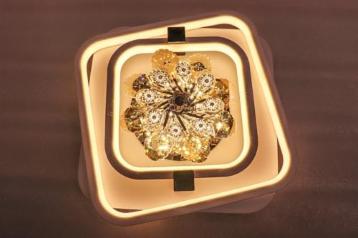 swanart Luster Crystal Chandelier, 30cm Modern LED Ceiling Light Fixture with Rotating Flower, Color Changing Flush Mount Lighting for Bedroom, Living Room, Dining Room