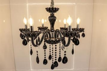 swanart Vintage Black Crystal Chandelier - Elegant 6-Light Pendant with Black Beads and Candle-Style Lights, Perfect for Living Rooms, Dining Rooms, and Bedrooms