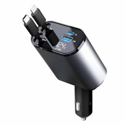 Tecdot 120w Retractable Type C/Type A 4 in 1 Car Charger Compatible with iPhone/Android Super Fast Charging Adapter with USB C Cable