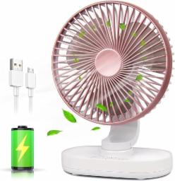 TEKCOOL 4000mAh Rechargeable Desk Fan, Portable Table Fan,USB Fan, USB Battery Powered Quiet Personal Fan,4 Speed for Home Office Travel Outdoor(Rose),