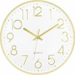 TEKCOOL Analogue Plastic Wall Clock 12" Silent Quartz Decorative Latest Wall Clock Non-Ticking Classic Clock Battery Operated Round Easy to Read for Home/Kitchen/Bedroom/Office/School - (Gold White).