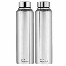 The Better Home 304 Stainless Steel Water Bottle 1 Litre | Water Bottle For Office Home | Water Bottle Steel | Steel Water Bottle For Kids School | Office Water Bottle For Women Men (Silver - 2 Pcs)