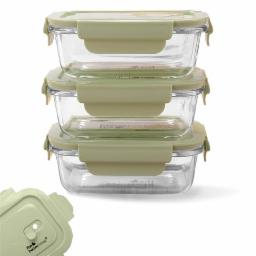 The Better Home Borosilicate Glass Lunch Box Set of 3 (410ml Each) with Air Vent | Tiffin Box for Office | Lunch Box for Women School Kids | Microwave Safe Leak Proof Airtight Lunch Boxes (Green)