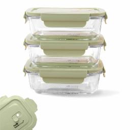 The Better Home Borosilicate Glass Lunch Box Set of 3 | 680ml Each | Tiffin Box for Office for Men Women | Lunch Box Glass Containers | Microwave Safe Leak Proof Airtight (Green)