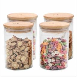 The Better Home Pack of 4 Kitchen Accessories Item with Bamboo Lid I Transparent Airtight Borosilicate Kitchen Containers Set | Glass Jars for Cookies Snacks Tea Coffee Sugar | 600 ml Each
