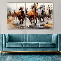The Castle Decor 7 Horses Wall Painting for Living Room Big Size - 7 Running Horses Painting Vastu for Bedroom, Office, Hotel - Wall Decor Digital Painting Wooden Framed for Gifting (36x60inch)