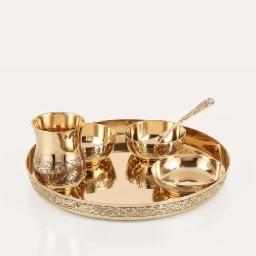 THE HEALING STORE 6-Piece Kansa Solid Dinner Set|Matte Finish|1 Plate (11.5" Thali),2 Bowls,1 Glass,1 Sweet Dish Plate,1 Spoon | Bronze Kansa Dinner Set 6 Shine Polish Finish (eaching Design)