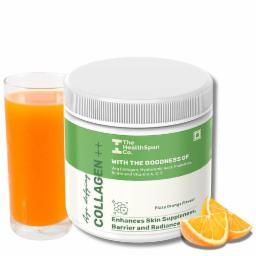 The Healthspan Co. Vegan Collagen Supplement 250gm for Women & Men | Hydrolyzed Collagen Peptides with Biotin, Hyaluronic Acid & Glutathione | Supports Healthy Skin, Hair & Nails | Orange Flavor, 25 Serves, Powder