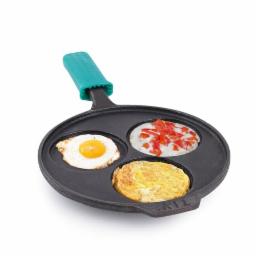 The Indus Valley Pre-Seasoned Cast Iron Uttapam Tawa with Silicone Grip | 3 Pit, 23cm/9 inch, 1.6kg | Induction Friendly | Naturally Nonstick, 100% Pure & Toxin-Free, No Chemical Coating