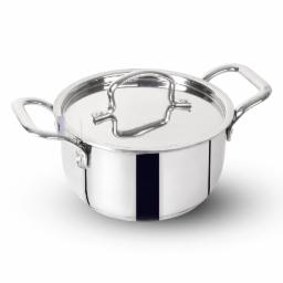 The Indus Valley Triply Stainless Steel Casserole Stock Pot/Briyani Pot with 5-Ply Thick Bottom Stainless Steel Lid | 18cm/ 7.1 inch, 2.3Ltr, 1.76kg | Induction Friendly | 100% Toxin-Free