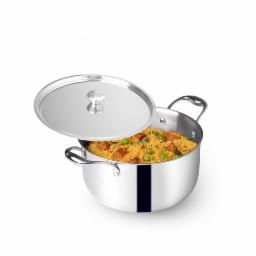 The Indus Valley Triply Stainless Steel Stock Pot with SS Lid/Briyani Pot/Casserole | 20cm/ 7.8 inch, 3.2Ltr, 1.3kg | Induction Friendly | 100% Toxin-Free