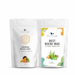 The Wellness Shop Instant Turmeric Facial Wax- 5 Minute (100g) | Best Bikini Wax- 10 Minute Herbal Waxing Painless Powders (100g) | Reduce Dark Skin Cells, No Irritation & Skin Rashes, Combo- 2 Pcs