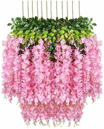 Tia Crafts Artificial Hanging Flowers for Ceiling Balcony | Purple Wisteria Vine | Home Party Decor Garden Outdoor Greenery Office Wall Decoration |Waterproof Washable 3.7ft/45 Pack of 6 (Pink, 6)