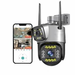 TP PLUS WiFi 1080 P Security Camera, 2-Way Voice Call 10-15m Human Ear Level Pickup, 6MP Motion Detection 110-240V Rotatable IP66 Surveillance Camera for Outdoor (Dual Lens PTZ K-805)