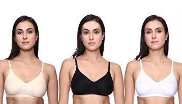 TRASA Women's and Girls Cotton Non-Padded Non-Wired Everyday T-Shirt Bra - Colour - Black, White and Skin, Size : 34