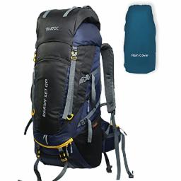 TRAWOC 65 Liter Internal Frame Camping Trekking Hiking Backpack Travel Bag Front & Top Loading Rucksack / Water Proof Rain Cover / Shoe Compartment, HK011