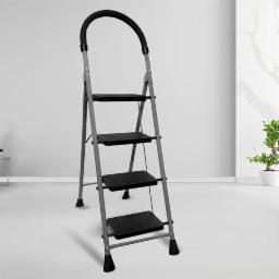 TRENDY Carbon Steel 4 Step-Ladder For Home | Heavy Duty Foldable Ladder With Wide Ant-Slip Steps And Anti-Skid Shoes