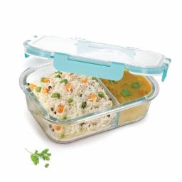 Treo by Milton Clip Fresh Rectangular Divider Container, Microwave Safe, Hi Borosilicate Glass Lunch Box for Office Use – Clip Lock Airtight Tiffin, 100% Leak Proof, 600 ml, 1 Piece