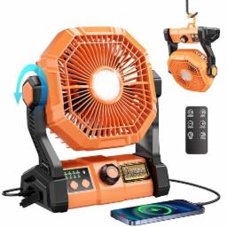 Tuarso 10000mAh Rechargeable Table Fan for Home with LED Emergency Light, Portable Battery Fan Rechargeable Big Size with Remote Control 8 High Speeds Wind, Kitchen Fans for Cooking Orange