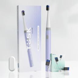 Tusk Gentle One Electric Toothbrush with 2 Replaceable Soft Brush Heads - USB-C Rechargeable, 24,000 Sonic Vibrations, 60-day Battery Life, 3 brushing Modes - Purple
