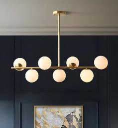 twixle (Without Bulb 7 Light Glass Globe Sputnik Chandelier Modern Metal Ceiling Light Hanging Fixture Golden Semi Flush Mount Chandelier for Living Room Dining Room Bedroom
