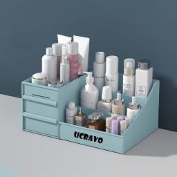 UCRAVO Cosmetic Organizer Box Drawers Storage Plastic Stationary Box | Make Up Organiser For Women (Blue)
