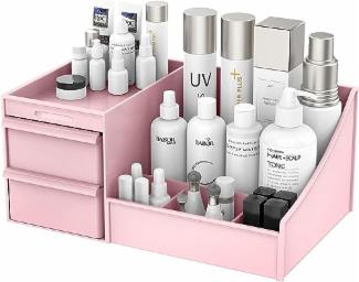 UCRAVO Plastic Makeup Organizer, Skincare Organizers On Countertop, Cosmetic Storage Organizer Fits Skincare, Lotions, Nail Polish, Brushes, And Perfume, Gift Container Vanity Pink, Cosmetics