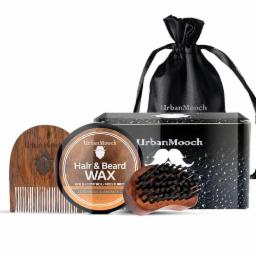 UrbanMooch 3-in-1 Beard Grooming Kit for Men | Rakhi Gift for Brother | Beard Brush, Beard Wax & Wooden Beard Comb for Daily Beard Grooming & Care | Gifts for Men