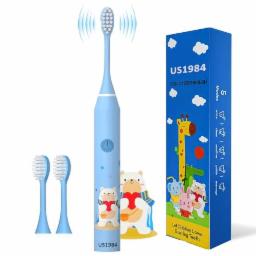 US1984 Sonic Electric Toothbrush for Adults with 5 Modes, 3 Brush Heads & Rechargeable, Last up to 30 Days, Ultra Soft Nylon Bristles, IPX7 Waterproof, Kids Power Toothbrush (Blue)