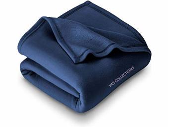 VAS COLLECTIONS - 300 TC All Season Solid/Plain Light Weight Polar Fleece Single Bed Blanket (152 x 230 cm, Blue), Lightweight