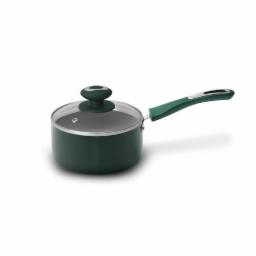 Vaya Hautechef Non-Stick Saucepan with Glass Lid 16cm, 3-Layer ILAG Swiss Coating, PFOA-Free, Induction Friendly, with Soft-Touch Matching Handle, Color - Green