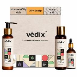 Vedix Customized Hair Fall Control Regimen for Normal/Oily Hair - Oily Scalp & Wavy Hair - Customized Ayurvedic Hair Care Regimen - 3 Product Kit - Anti Hair Fall Oil Neem + Lotus - Anti-Hairfall Shampoo - Hair Growth Serum…
