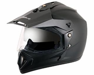 Vega Off Road ISI Certified Matt Finish Full Face Dual Visor with Peak Helmet for Men and Women Outer Clear Visor and Inner Smoke Sun Visor(Dull Black, Size:L)