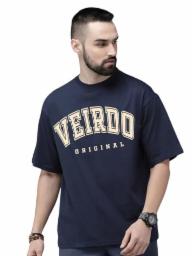 Veirdo® Pure Cotton Navy Blue Oversized Fit Typographic Printed Half Sleeve T-Shirt for Men (OS_100_VDORGNL_NVY_XL)