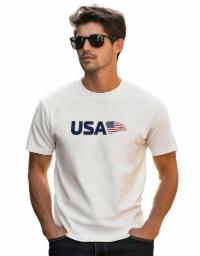 Veirdo® Regular Fit Half Sleeves Round Neck Typographic Printed Pure Cotton T-Shirt for Men (TSH_V_99_USA_WT_M)