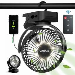 Verilux® Rechargeable Table Fan with Night Light & Remote Control, 360° Adjustment 8000mAh High Speed Table Fan for Home, Office, Camping with Clip and Power Bank