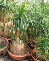 The Ponytail Palm features a bulbous trunk that stores water and long, curly leaves that cascade like a fountain, making it a captivating centerpiece for any indoor space.