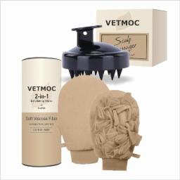VETMOC 2 in 1 Exfoliating Glove & loofah with Hair Scalp Massager Shampoo Brush with Soft Silicone Bristles (Random color)