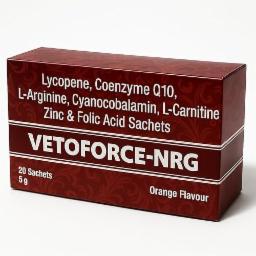 Vetoforce-NRG | L-Arginine, L-Carnitine, CoQ10, Lycopene, Zinc & Folic Acid | Sugar-Free Pre-Workout Drink for Men & Women | BP, Energy & Stamina Support | Orange Flavor (20 Sachets)