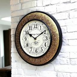 Vintage Clock Handcrafted Brass Inlay Wooden Clock / With Hand-Hammered Brass Work / 1 Year Warranty / English Numerals, Analog