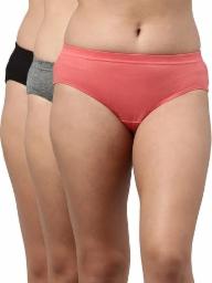 VIP Feelings Intimate Women's Inner Elastic Cotton Hipster Panty Plain- Assorted Solid Colours (Pack of 3, 95 CM)